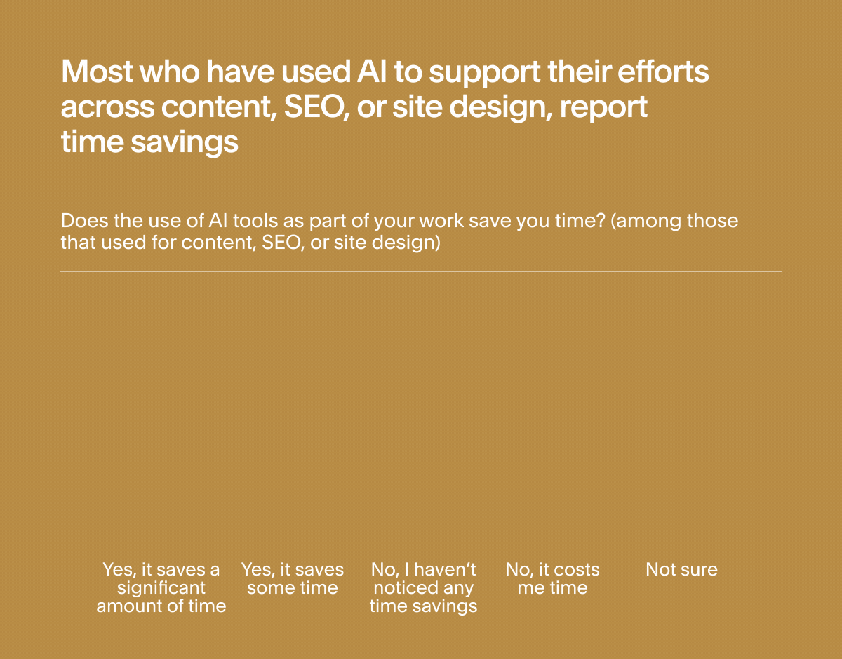 Eighty-one percent say they feel creatively fulfilled, and notably, those who’ve used AI tools to help build clients’ websites report even higher levels of fulfillment than those who haven’t. In other words, using AI tools to support their work doesn't seem to reduce creative fulfillment for web designers.
